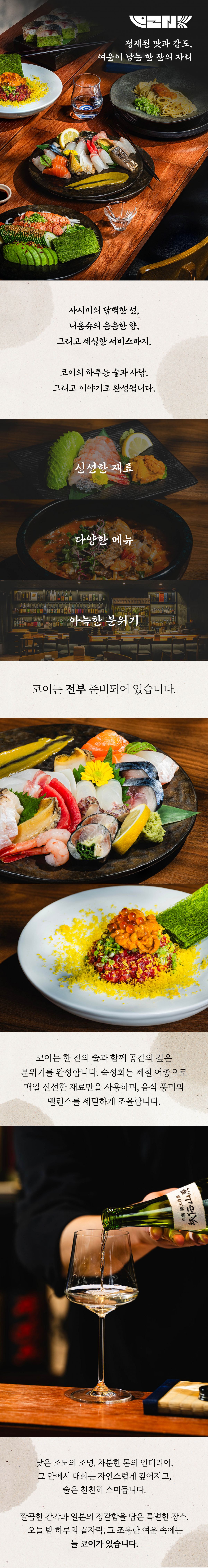 오늘의 하루를 마무리하는 가장 고요하고 특별한 곳, 이자카야 코이입니다.
